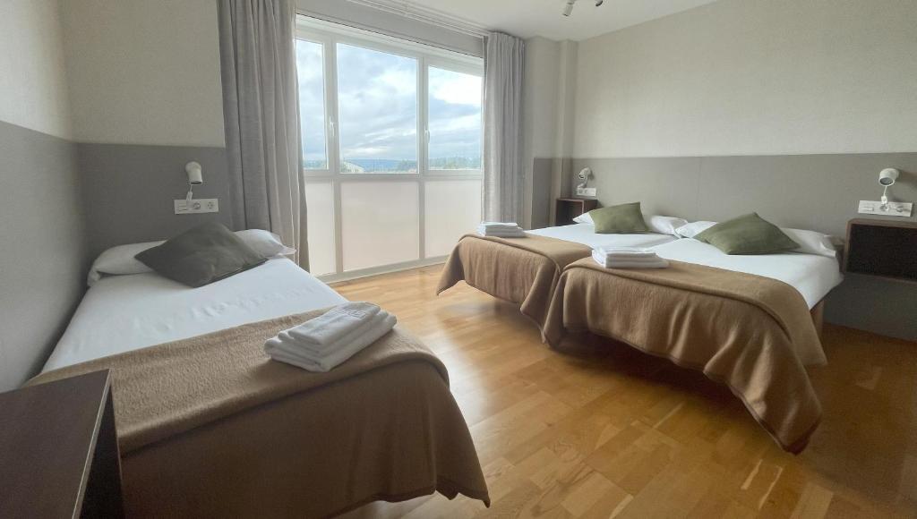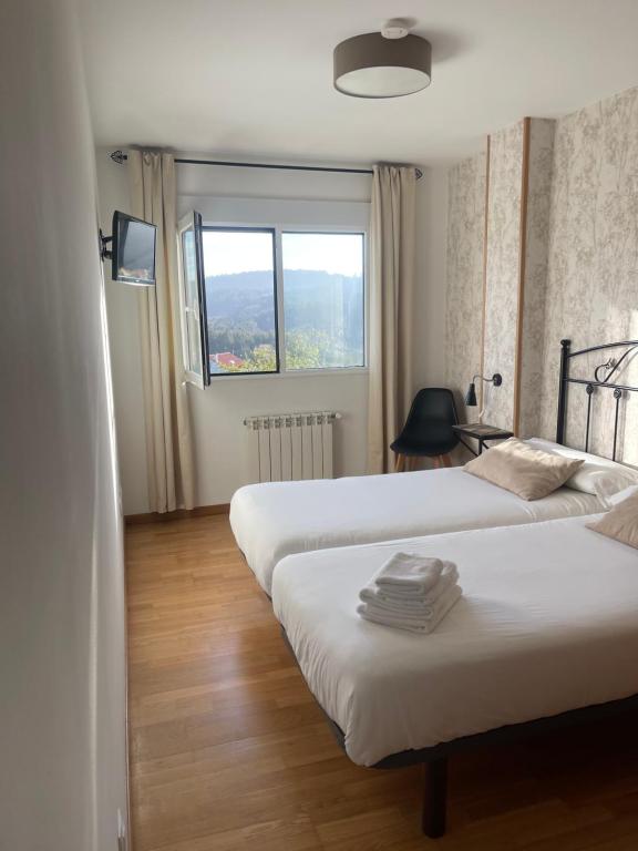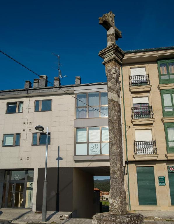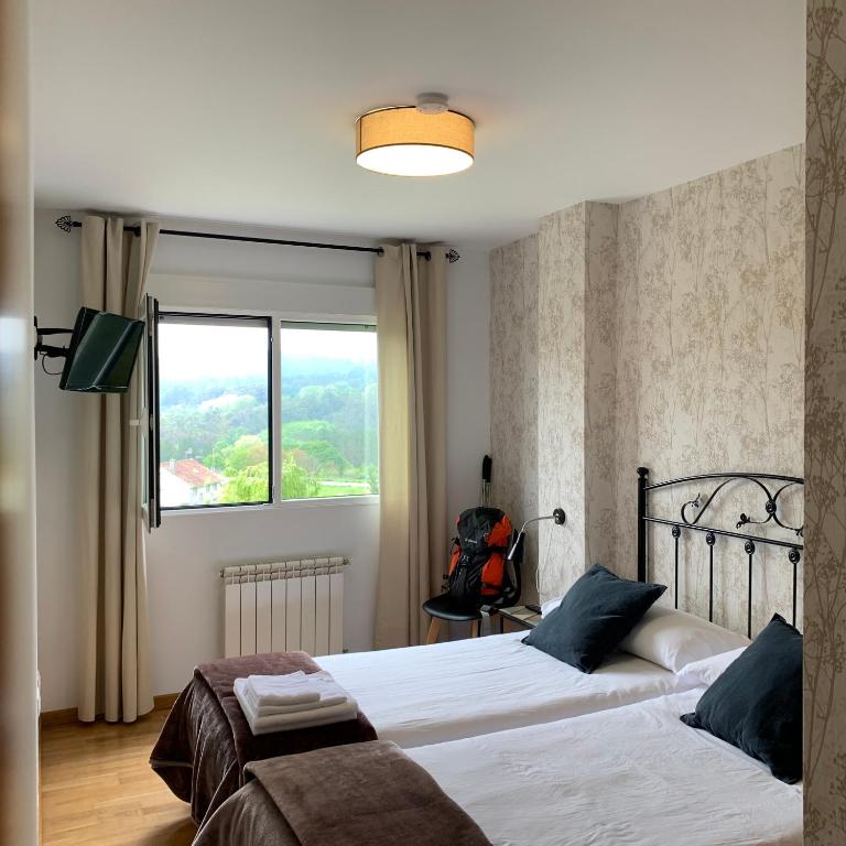 Nos encontramos en una zona tranquila, junto al núcleo antiguo de O Pedrouzo, al lado de la Iglesia de Santa Eulalia y rodeados de zonas verdes.